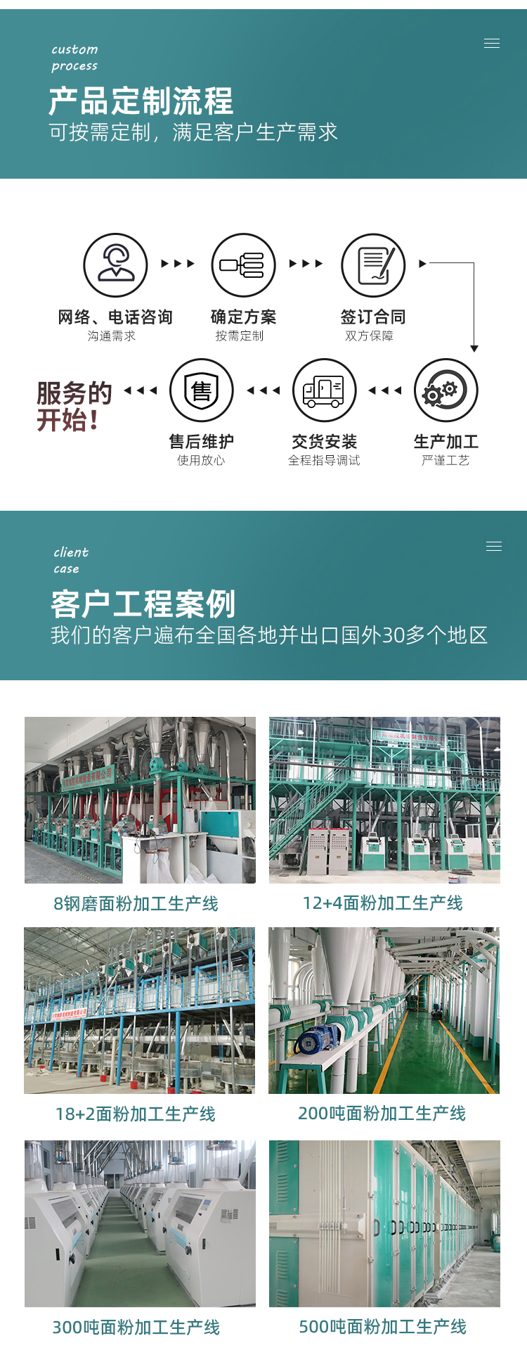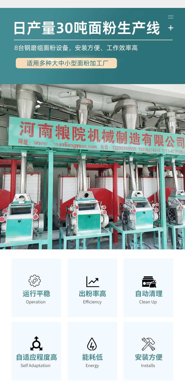 日產(chǎn)30噸面粉生產(chǎn)線具有占地面積小、操作簡單、耗電低、自動化程度高等特點。適用于小型面粉加工廠、來料加工的鄉(xiāng)鎮(zhèn)磨坊、大型食堂等領域。