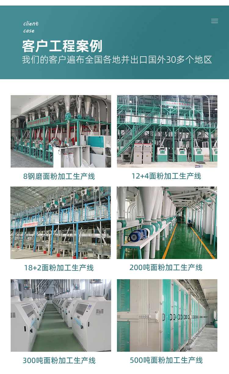 8臺鋼磨組面粉機采用了兩篩兩打兩去石 洗麥的清理工藝,分為毛糧清理和凈糧清理兩大部分,充分保證了入磨小麥的質量。