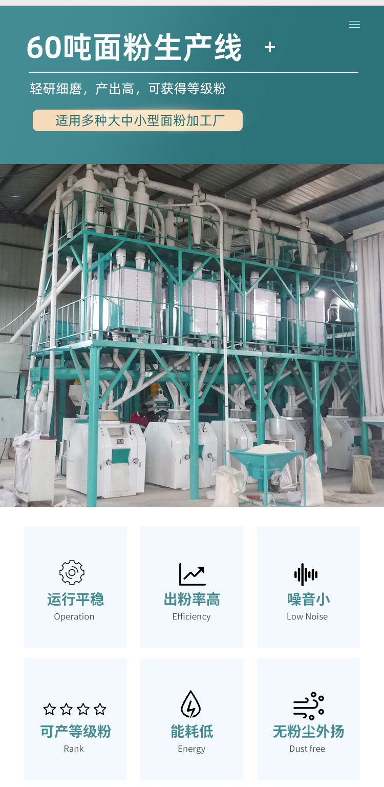 60噸級面粉機械特點:
