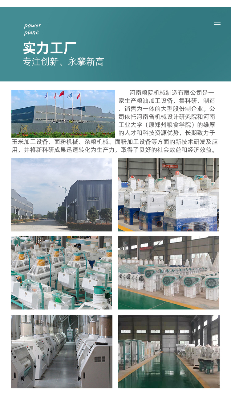 制粉間工藝:采用四皮四芯 渣、分級采用四臺篩外分級篩、 刷麩、篩粉采用三部雙倉平篩、生產(chǎn)效率高、維修方便、磨機粉采用對輥研磨、同步帶傳動、生產(chǎn)效率高、噪音小、無粉塵外揚、維修方便等特點。